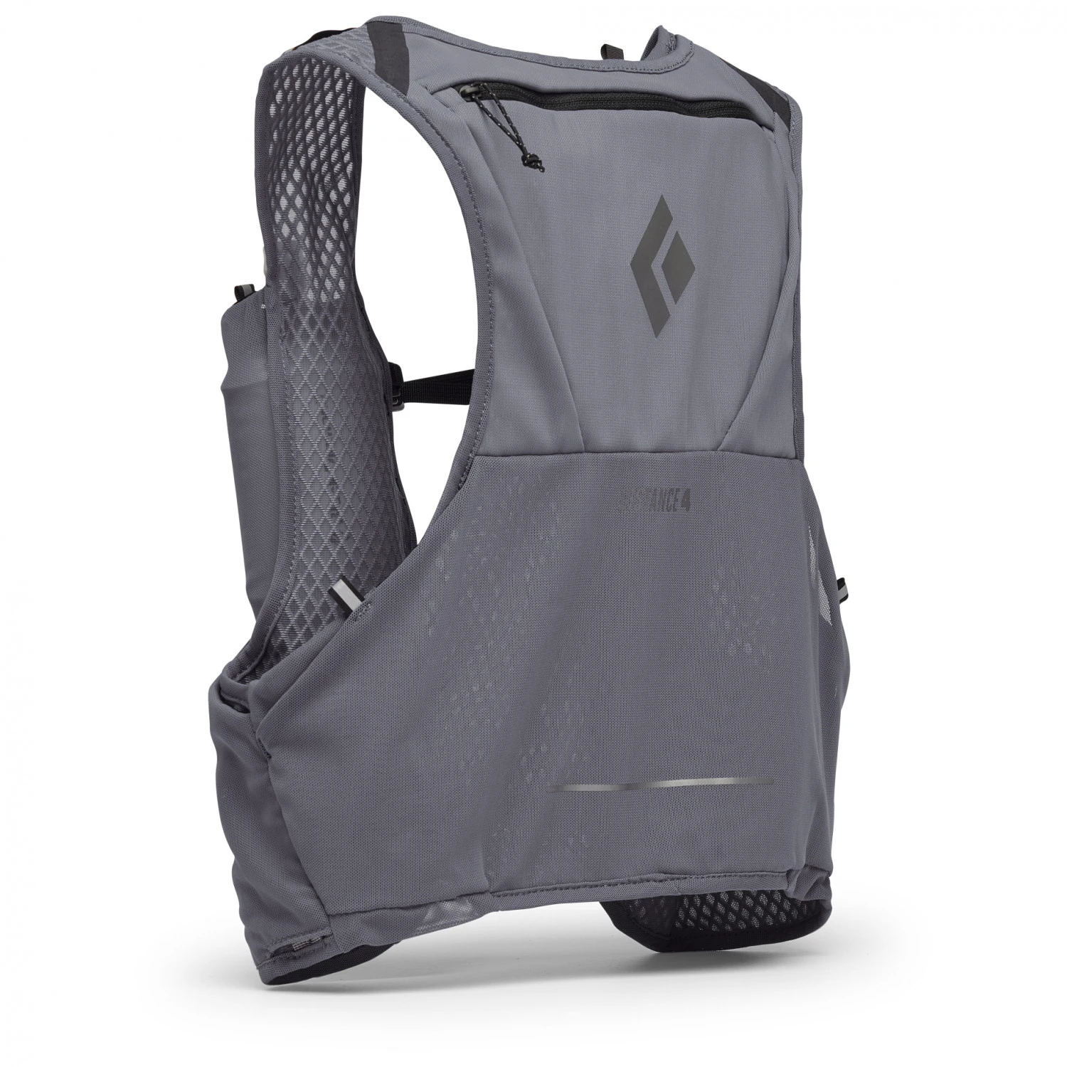 The Distance 4 Hydration Vest from Black Diamond is a vest-fit trail running backpack optimised specifically for the male physique and is ideal for long runs in challenging, mountainous terrain where poles might also be used. The backpack is made from light and breathable material with stretch mesh edging, making it extremely elastic and comfortable while also providing excellent ventilation. Plus, its ergonomic construction is designed for dynamic running movement and prevents friction and chafing thanks to its tight, cohesive fit.