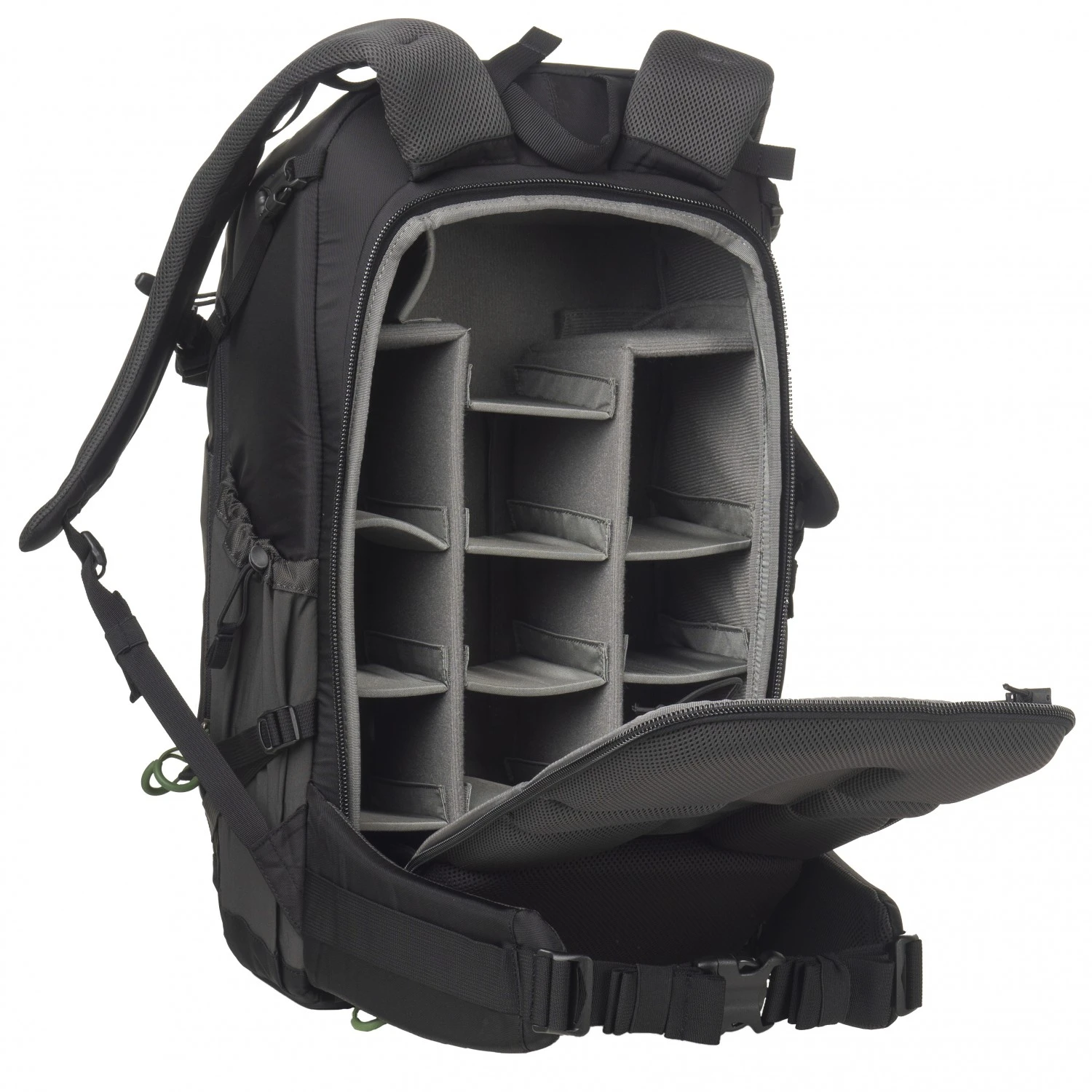 Various external compartments keep little bits and pieces close at hand and well-organised. The AirMesh back panel and padded straps make it comfortable to carry. Tripod or trekking poles can be carried in the holders provided or in the compression straps on the outside. Daisy chains can be used for attaching other pieces of equipment.