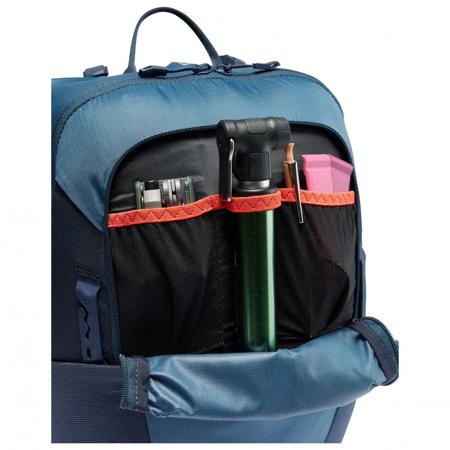 | Additional features | front compartment, key clip, rear light mount, hip belt pocket, 2 side mesh compartments, helmet carrier |